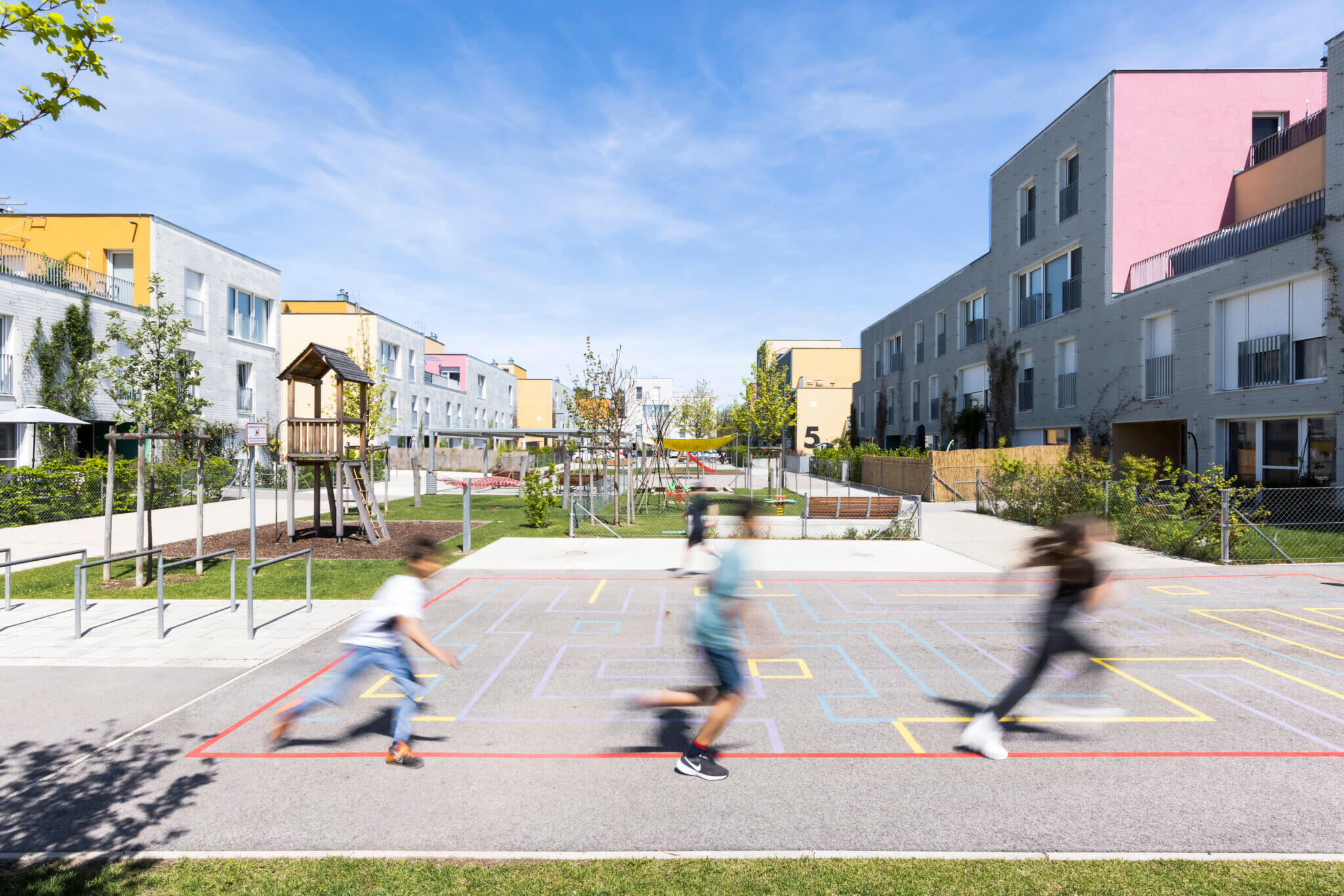 In Breitenlee hat die WBV-GPA eine zeitgenössische Wohnanlage mit charmantem Dorf-Charakter geschaffen. Dabei wurde besondere Rücksicht auf die Bedürfnisse aller Bewohner:innen gelegt: von den Kleinsten bis zu den Dorf-Ältesten.