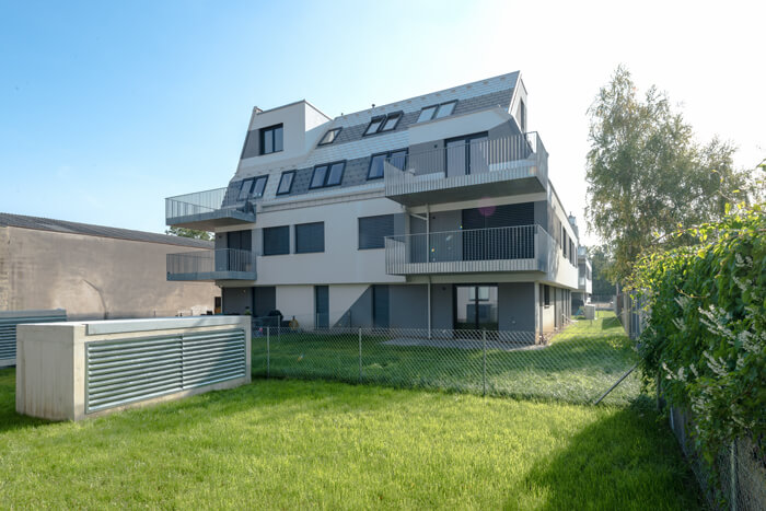 Mit einem Wohnungsmix, der von 1-Zimmer bis 5-Zimmer Wohnungen reicht, ist für ein breites Angebot gesorgt. Die Wohnungen verfügen großteils über wohnungsbezogene Freiräume, wie Balkone, Loggien, Terrassen oder Eigengärten, die zum Hof hin orientiert sind. Die Anbindung an den öffentlichen Verkehr erfolgt durch eine Bus und U-Bahn.