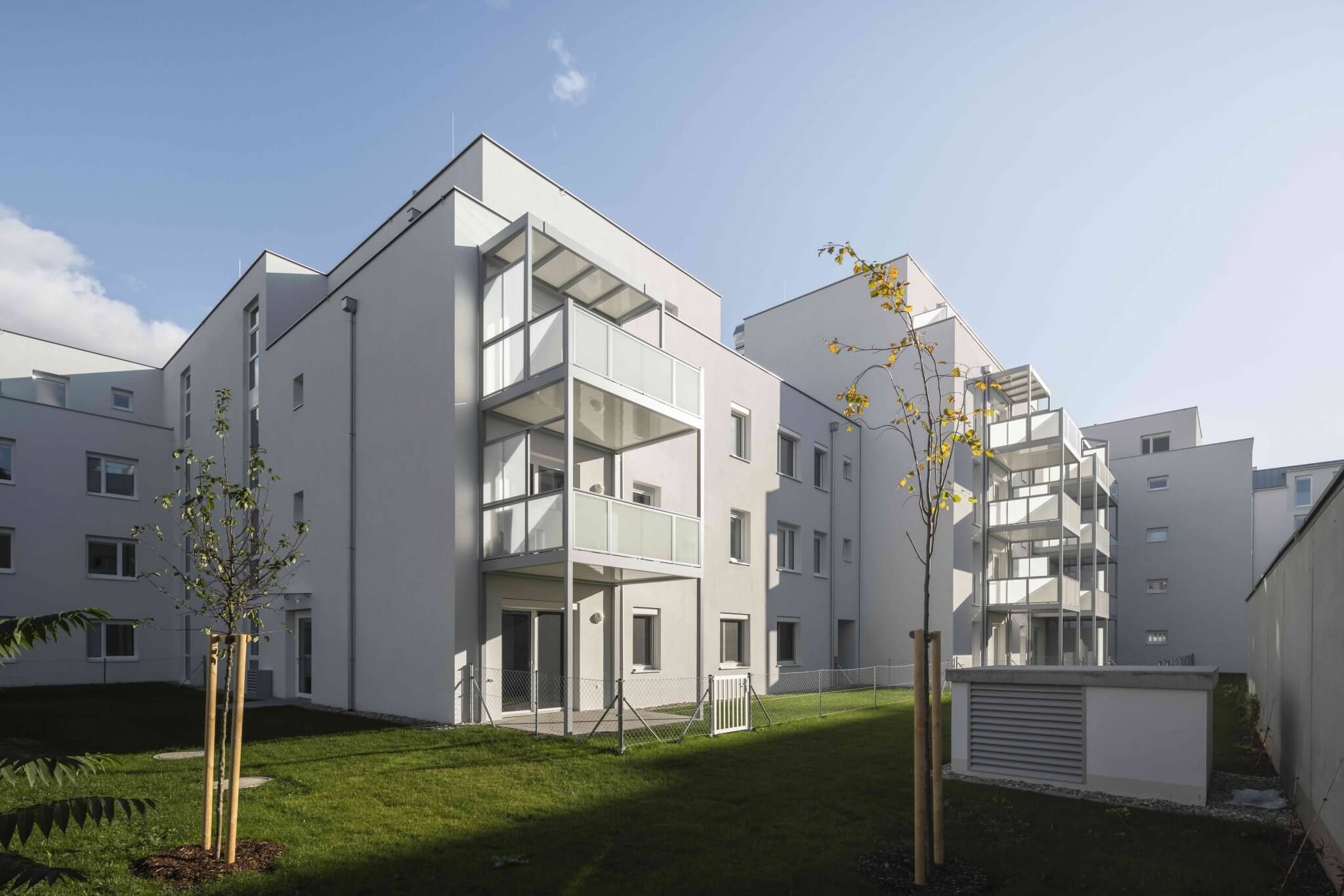 Der Wohnbau besteht aus drei Bauteilen und sechs Wohnhöfen. Die Wohnungen in zentraler, aber ruhiger Lage sind gut belichtet. Es gibt Zwei- bis Vier-Zimmer-Wohnungen, die allesamt über einen Tiefgaragen- sowie Fahrradabstellplatz verfügen. Alle Ebenen sind komfortabel und barrierefrei mit dem Lift erreichbar.