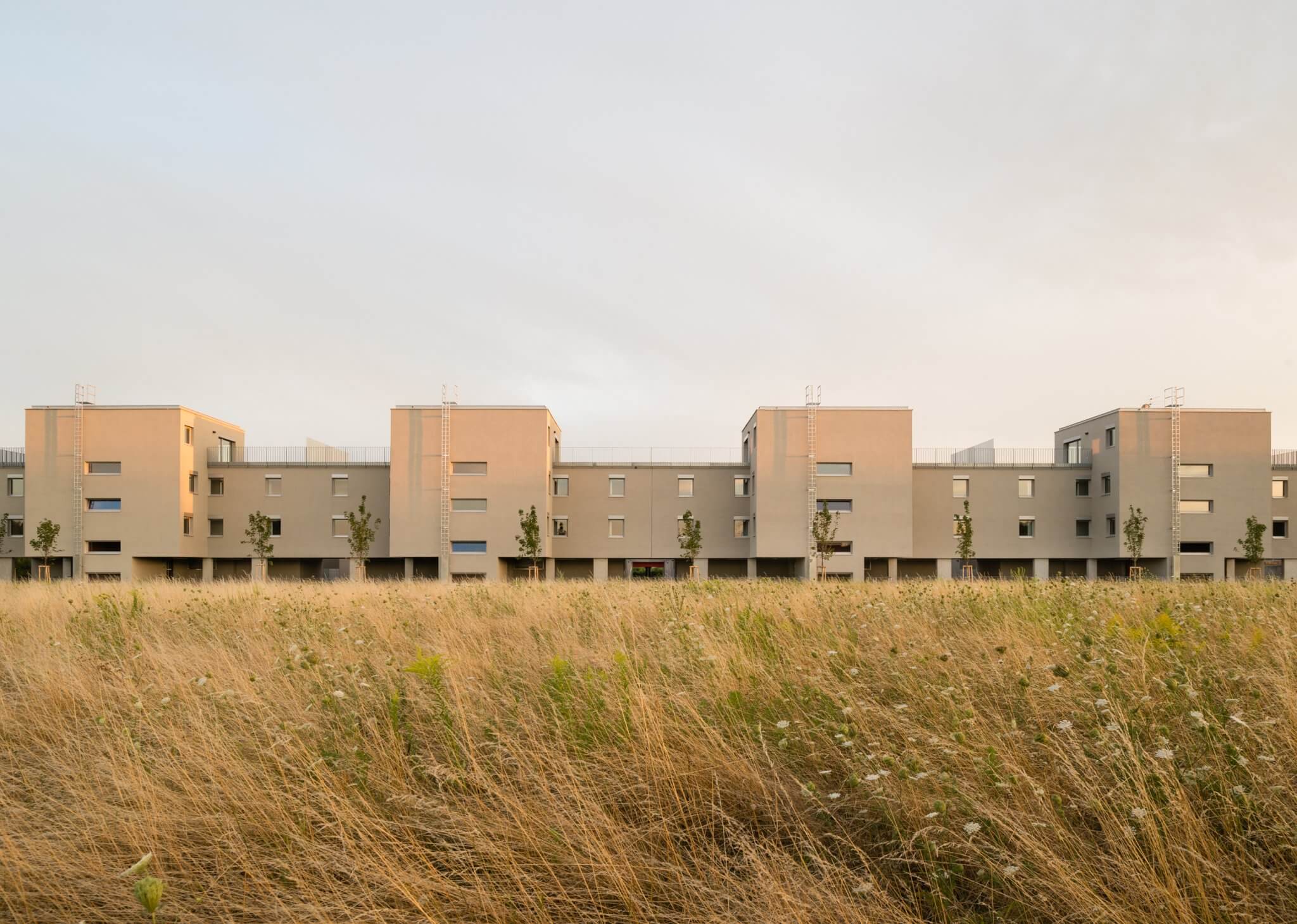 Die Wohnhausanlage besteht aus 24 reihenhausähnlichen Atriumhäusern, die einen Gartenhof umschließen. Das Wohnungsangebot in den Häusern umfasst eingeschossige Wohnungen sowie einige zweigeschossige Maisonetten. Alle Wohnungen (53,8 bis 122,4 m²) verfügen über private Freiräume wie Balkone, Terrassen, Loggien oder Mietergärten.