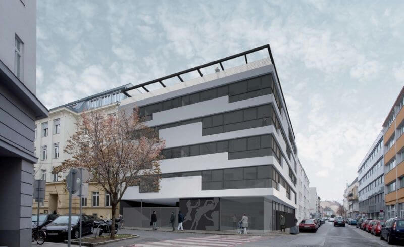 Das in der Zwischenzeit abgerissene Eckgebäude war nicht mehr wirtschaftlich verwertbar, weshalb es durch einen Neubau ersetzt wurde. Das Wohnhaus verfügt über ein Erdgeschoß, vier Wohngeschoße und ein zurückgesetztes Dachgeschoss. Im Erdgeschoß befinden sich zwei Wohneinheiten, zahlreiche Fahrradabstellplätze, der Müllraum und eine Kinderspielfläche im Innenhof. Eine der beiden Wohnungen verfügt auch über einen Raum, der direkt von der Straße begehbar ist und sich zur Nutzung als Büro anbietet.