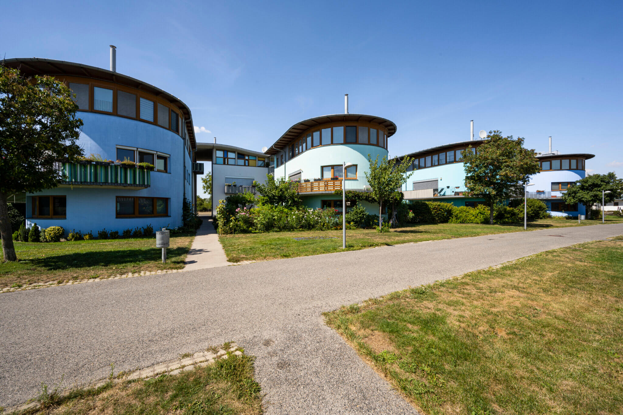 Wohnhausanlage bei Badeteich und Blumengärten